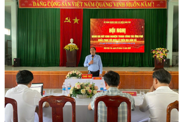 Chiều ngày 23.12, tại Hội trường UBND, UBND xã tổ chức Hội nghị đánh giá rút kinh nghiệm trong công tác ứng phó khắc phục với mưa lũ trên địa bàn xã (giai đoạn từ ngày 27.10 đến ngày 4.11.2025 và bão số 13). Tham dự có ông Lê Văn Quang - Bí thư Đảng ủy, Chủ tịch HĐND xã; ông Nguyễn Hồng Thanh - Phó Bí thư Thường trực Đảng ủy xã; ông Võ Như Phong - Phó Bí thư, Chủ tịch UBND xã, chủ trì hội nghị.