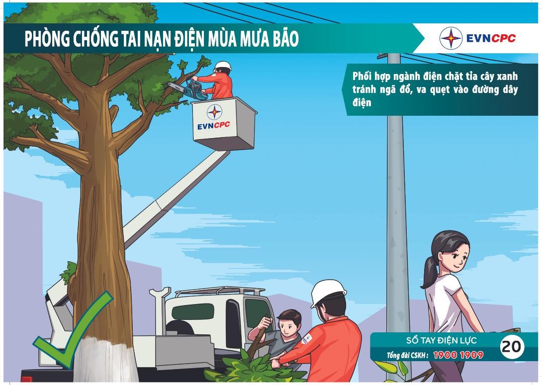 - Phối hợp với đơn vị quản lý điện để chặt, tỉa cây trong hành lang bảo vệ an toàn lưới điện và những cây có khả năng đổ vào kết cấu công trình điện;