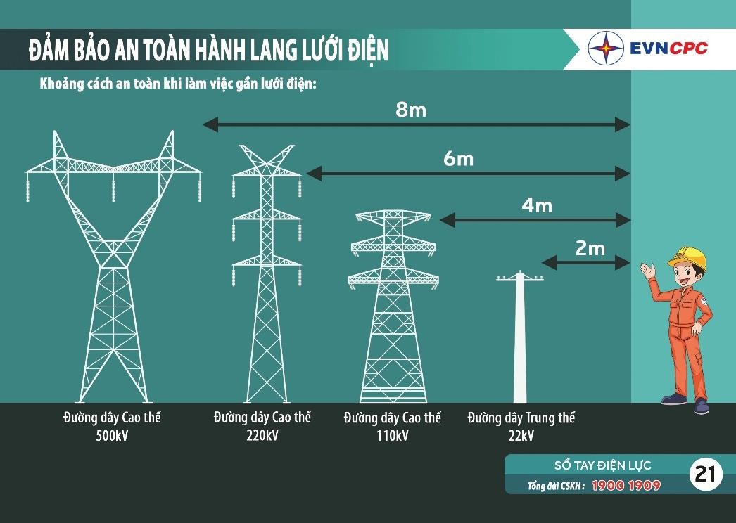 - Khi thực hiện chèn chống nhà cửa trước mưa bão, cần đảm bảo khoảng cách an toàn với đường dây điện.
