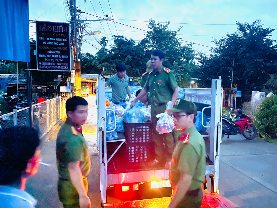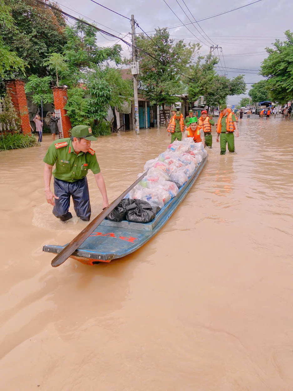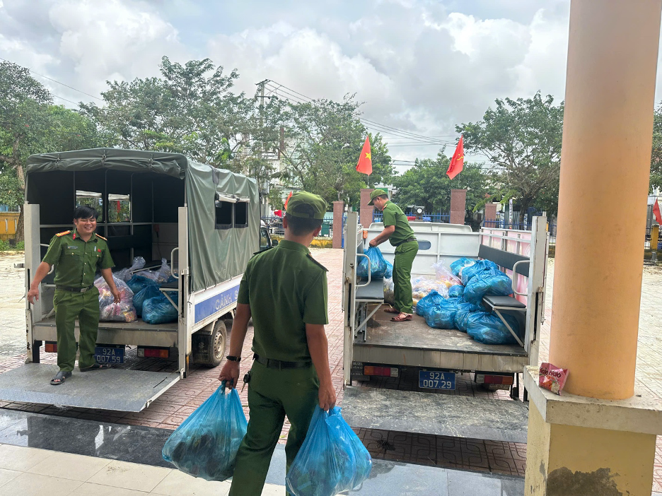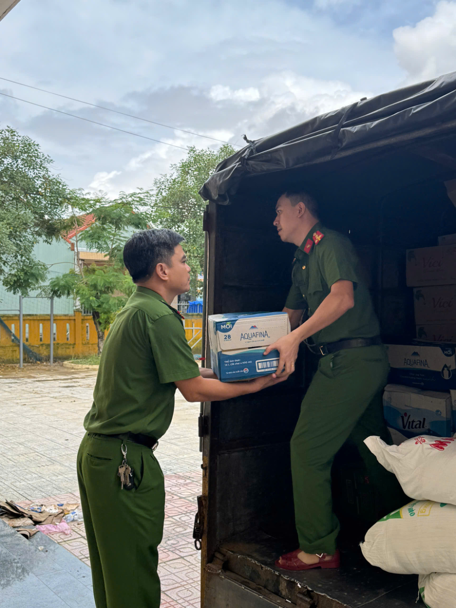 Từng thùng mì tôm, chai nước sạch, hộp sữa… được các cán bộ, chiến sĩ chuyển lên xuồng, xe tải nhỏ, vượt qua những tuyến đường ngập nước để mang đến từng khu vực bị ảnh hưởng nặng. Dù trời mưa, đường lầy lội, nhưng với tinh thần “Vì nhân dân phục vụ”, mỗi người chiến sĩ Công an xã đều nỗ lực hết mình, không quản ngại gian khổ, nhằm đảm bảo hàng cứu trợ đến đúng nơi, đúng người, đúng thời điểm.
