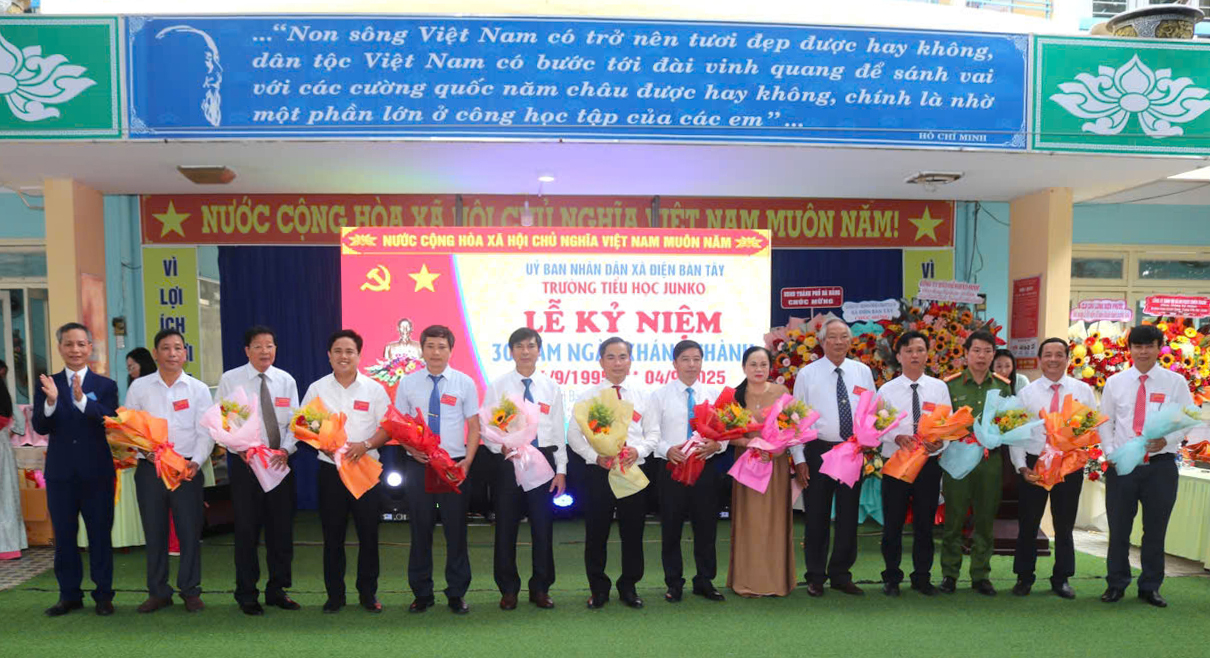 Sáng ngày 4.9, Trường Tiểu học Junko long trọng tổ chức Lễ kỷ niệm 30 năm Ngày khánh thành trường (04/9/1995 - 04/9/2025). Tham dự có ông Shimonishi Kiyoshi - Phó Tổng Lãnh sự Nhật Bản tại Đà Nẵng; ông Nguyễn Hoàng Nam - Phó Giám đốc Sở GD&ĐT TP Đà Nẵng; ông Lê Văn Quang - Bí thư Đảng ủy, Chủ tịch HĐND xã; ông Nguyễn Hồng Thanh - Phó Bí thư Thường trực Đảng ủy; các đại biểu trong Ban Thường vụ Đảng ủy, Thường trực HĐND - UBND - UBMTTQ Việt Nam, lãnh đạo ban, ngành đoàn thể xã và lãnh đạo, giáo viên, cựu học sinh nhà trường qua các thời kỳ.
