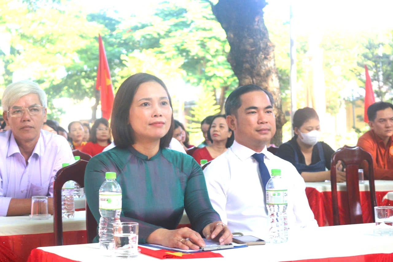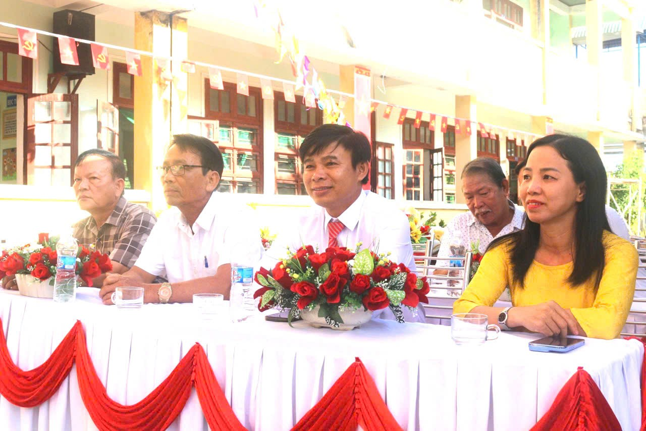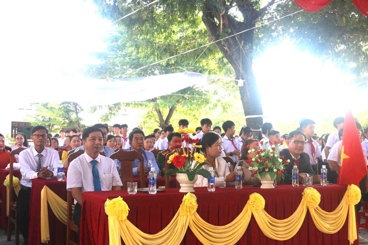 Ông Lê Văn Quang - Bí thư Đảng ủy, Chủ tịch HĐND xã dự Lễ khai giảng cùng thầy và trò trường THPT Hoàng Diệu.