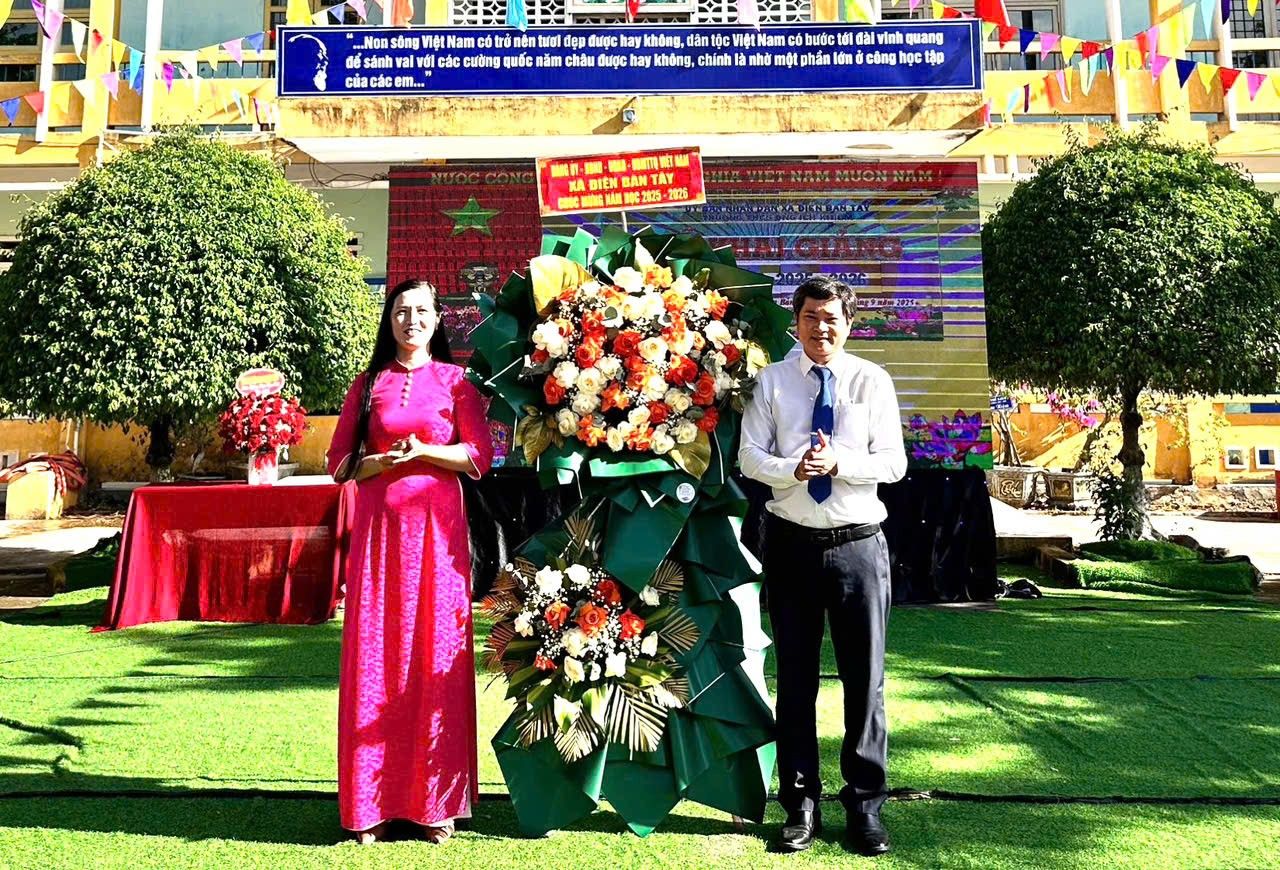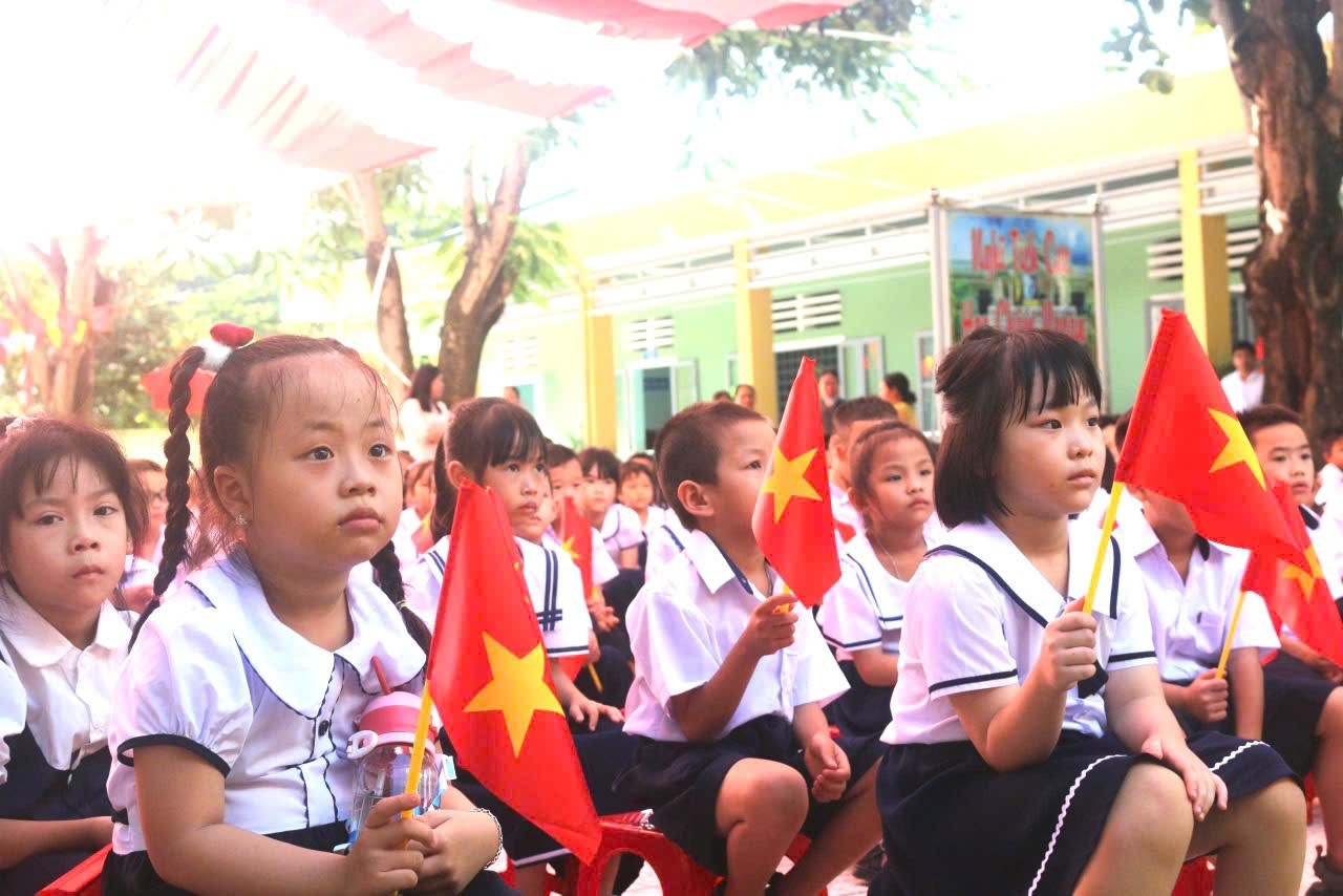Trong ngày khai giảng, ông Võ Như Phong - Phó Bí thư, Chủ tịch UBND xã và cô giáo Nguyễn Thị Cẩm Nhung - Hiệu trưởng nhà trường đã trao 5 máy tính trong Chương trình Sóng và máy tính cho em.