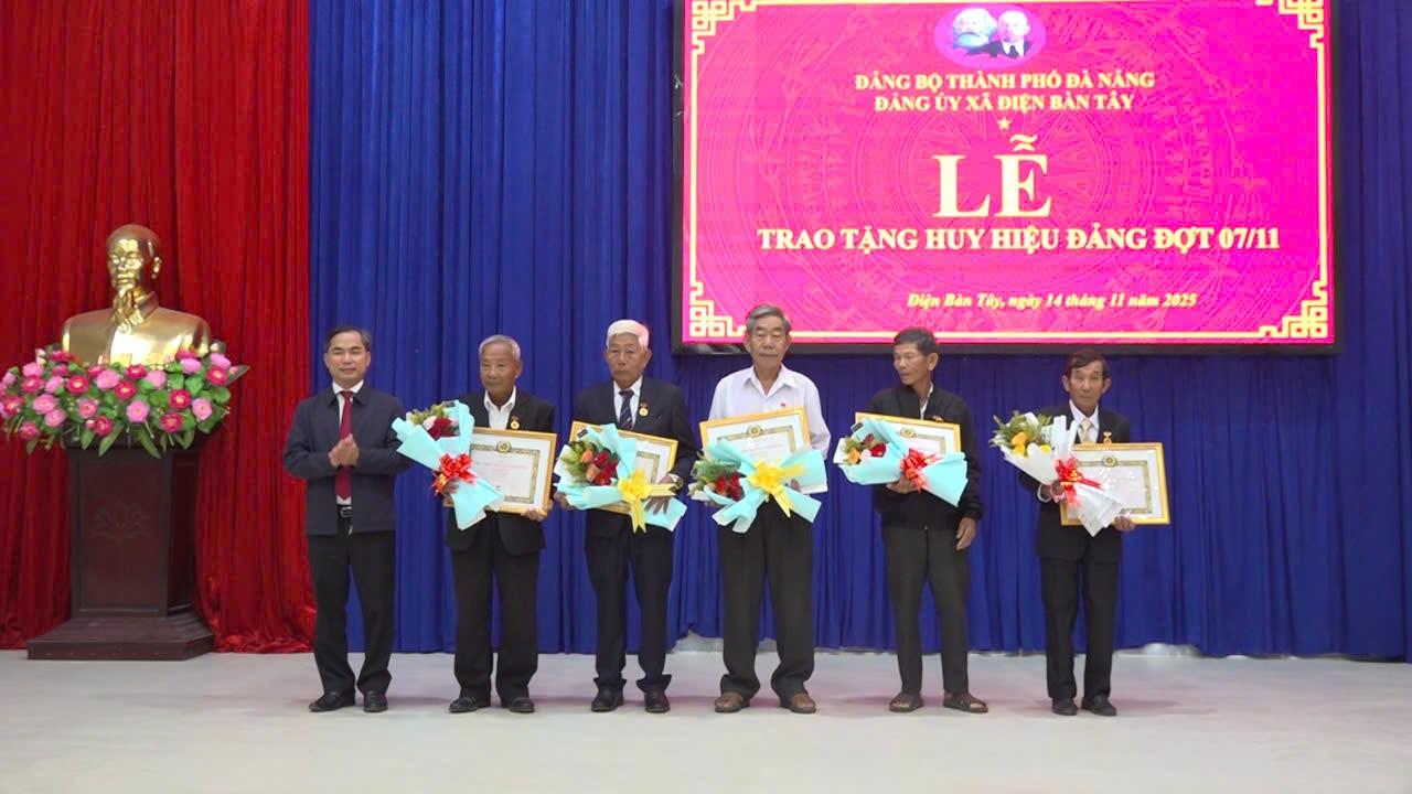 Sáng ngày 14.11, tại Hội trường Đảng ủy, Đảng ủy xã Điện Bàn Tây tổ chức Lễ trao huy hiệu Đảng đợt 7/11. Tham dự có ông Lê Văn Quang - Bí thư Đảng ủy, Chủ tịch HĐND xã; ông Nguyễn Hồng Thanh - Phó Bí thư Thường trực Đảng ủy xã; ông Võ Như Phong – Phó Bí thư, Chủ tịch UBND xã.
