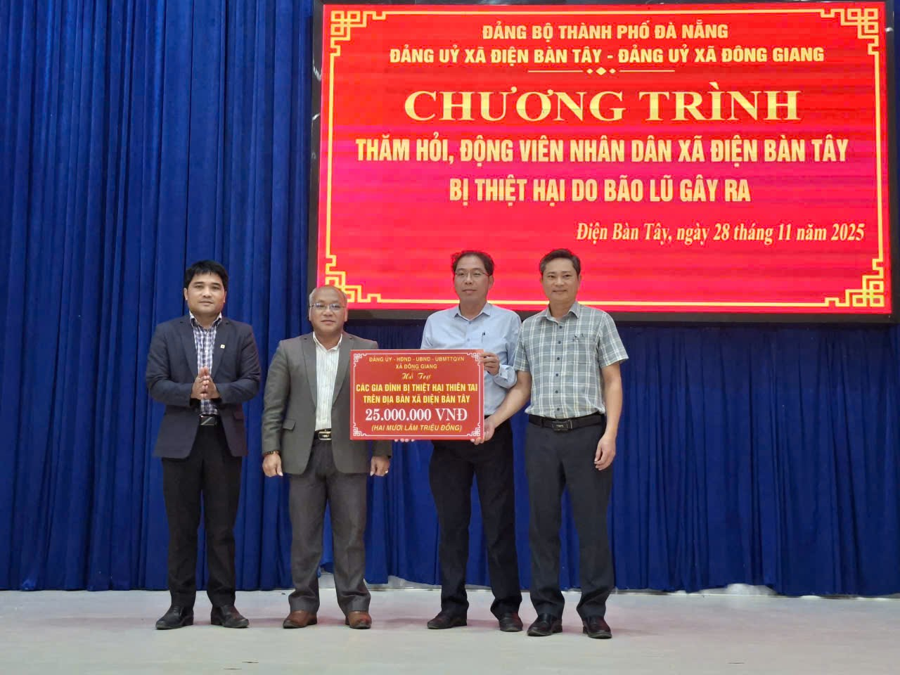 Dịp này, Đảng bộ, chính quyền và Nhân dân xã Đông Giang đã hỗ trợ 25 triệu đồng cho xã Điện Bàn Tây nhằm chia sẻ những mất mát, khó khăn mà bà con địa phương đang phải gánh chịu sau đợt mưa lũ lịch sử vừa qua. Đây là nghĩa cử thể hiện tinh thần đoàn kết, tương thân tương ái giữa hai địa phương, góp phần tiếp thêm động lực để Nhân dân Điện Bàn Tây sớm vượt qua khó khăn, ổn định cuộc sống và khôi phục sản xuất.